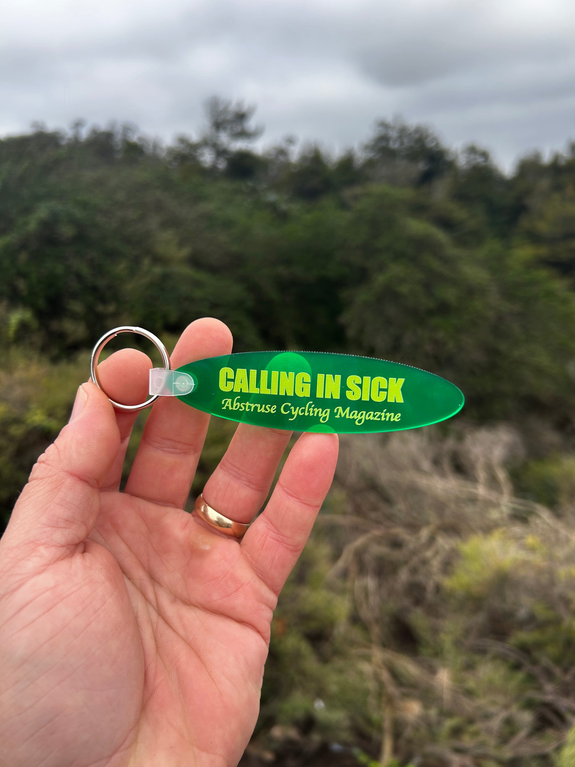 Soft vinyl keychains. Green-on-green. ABSTRUSE CYCLING MAGAZINE. Simple as.