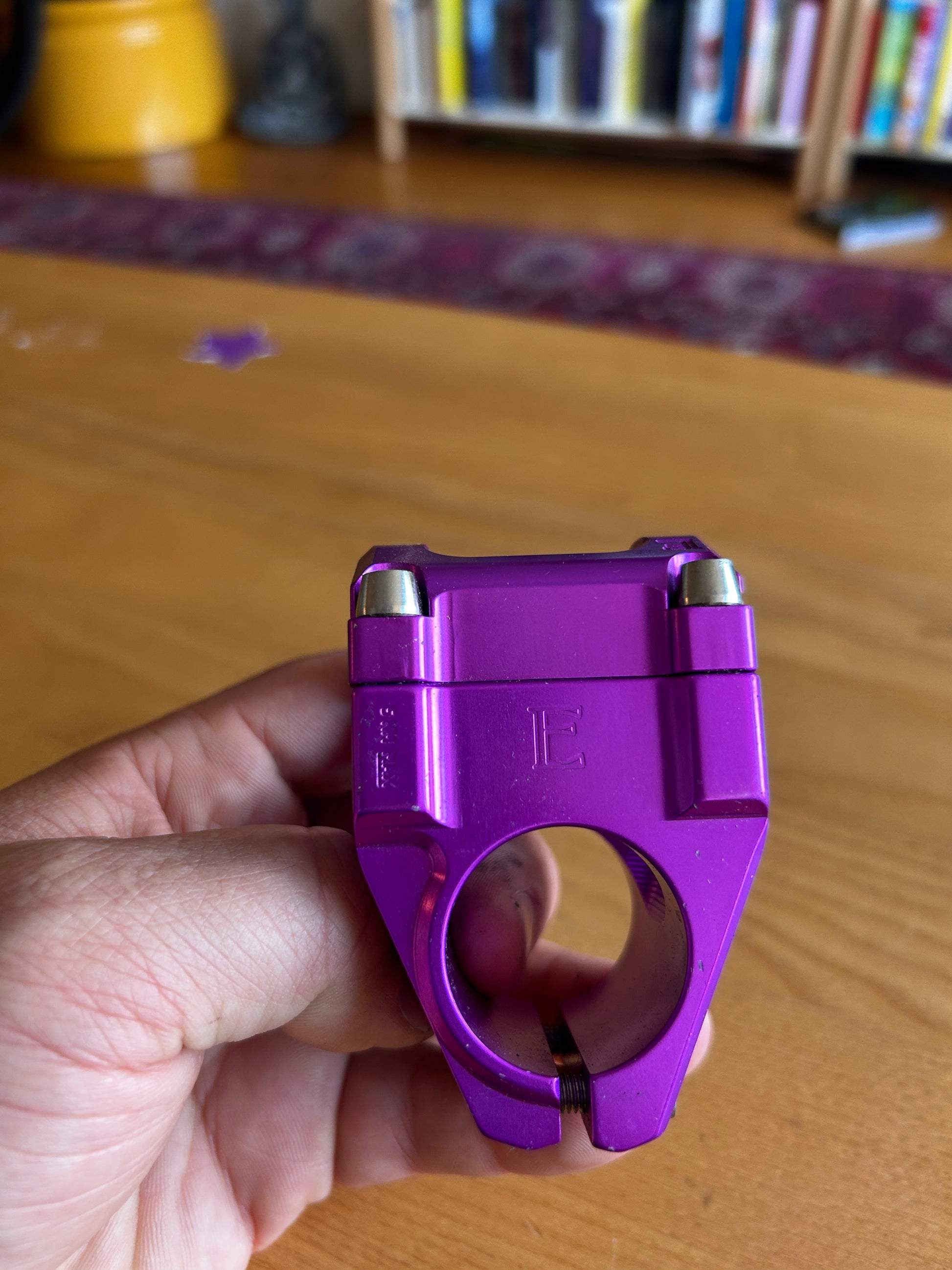Fantastic condition purple anodized Engin stem. 35mm bar clamp, 32mm extension. Has the ti bolt upgrade! Retailed for about $220 according to my memory. This company no longer exists, I believe. Philadelphia.