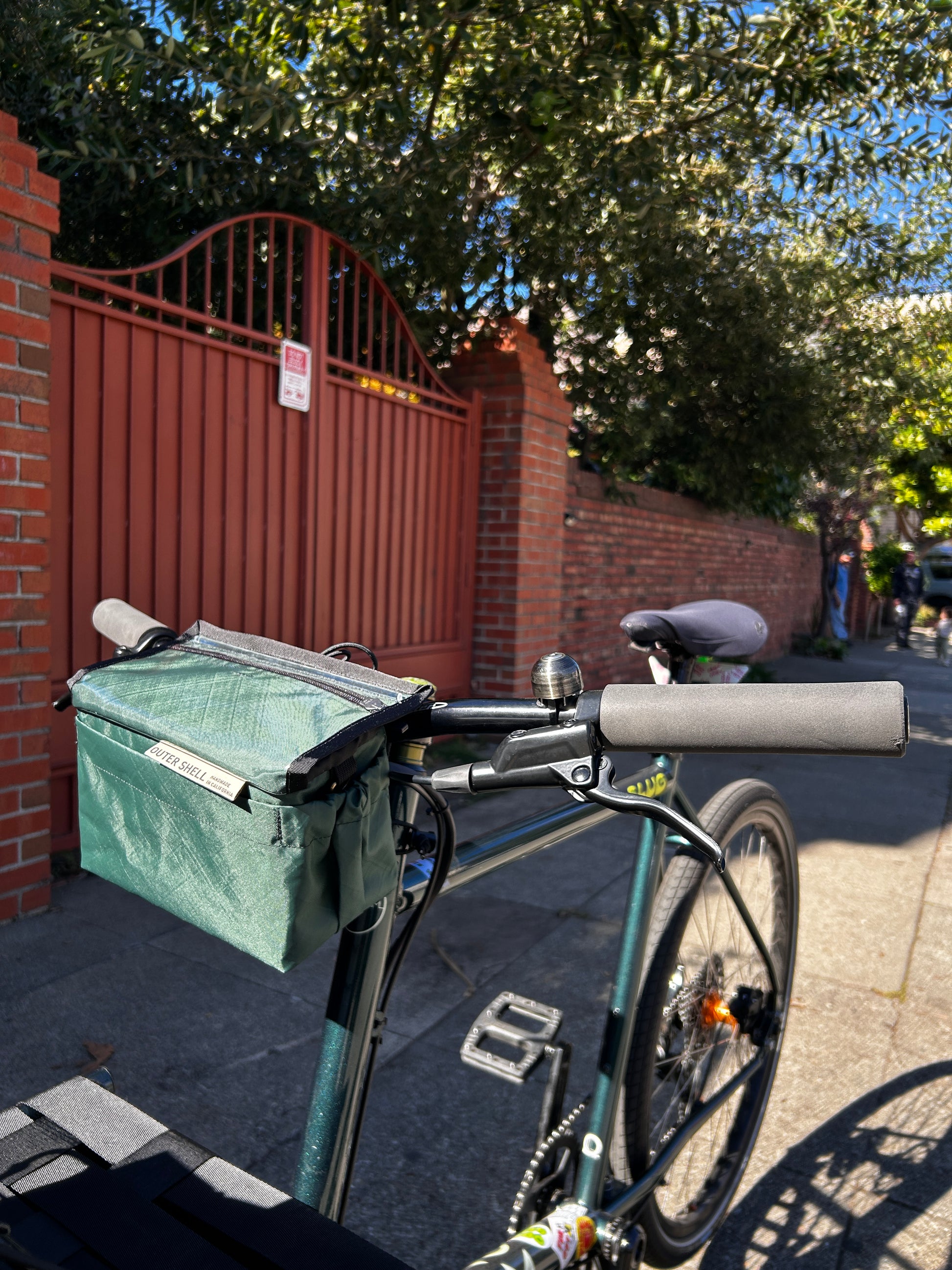 A special run of Outershell Drawcord Handlebar Bags in Green Mountain ECOPAK EPX. This color+material combination is only available here, made exclusively for Calling in Sick.