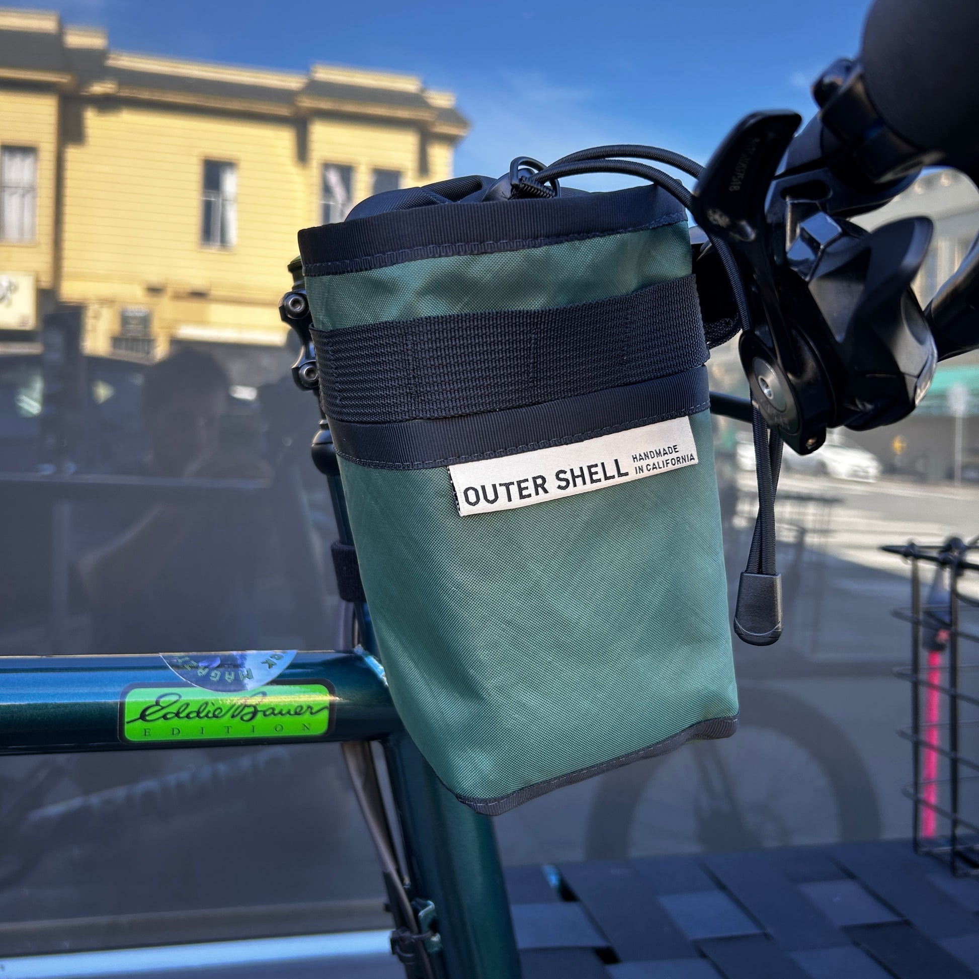A special run of Outershell Drawcord Handlebar Bags in Green Mountain ECOPAK EPX. This color+material combination is only available here, made exclusively for Calling in Sick.